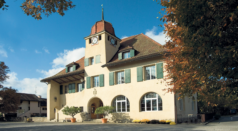 La bâtisse la plus représentative de la Commune de Mies a été conçue et réalisée en 1912 par l’architecte Braillard en tant qu’école. Aujourd’hui, le bâtiment restauré et réaménagé accueille l’administration communale et comprend une salle de fête au sous-sol.
