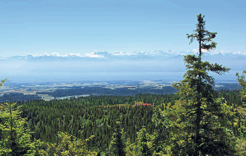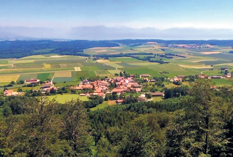 Au nord du village, la forêt qui s’étend sur plus de 500 hectares du haut du village jusqu’au pied du Mont-Tendre, où se situe le point culminant de la commune (1679 m d’altitude).