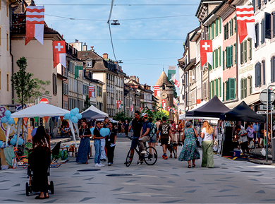 Côté événements, la ville ne manque jamais d’occasions de se rassembler. La Fête de la Tulipe, événement phare, accueille près de 300’000 visiteuses et visiteurs chaque printemps. Divinum, salon des vins de six jours, met en avant vigneronnes et vignerons passionnés. Le livre sur les quais, le marché de Noël au Château, ainsi que de multiples festivals et animations culturelles sur le site de Beausobre enrichissent l’offre. Associations, clubs sportifs, écoles de danse et de musique bénéficient d’un soutien municipal, notamment pour l’organisation de leurs manifestations, grâce à un coordinateur dédié.