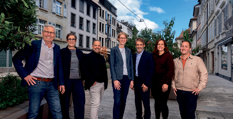 Municipalité de gauche à droite: Jean-Jacques Aubert, Laure Jaton, Vincent Jaques, Mélanie Wyss (Syndique), Laurent Pellegrino, Laetitia Morandi et David Guarna. © Darrin Vanselow
