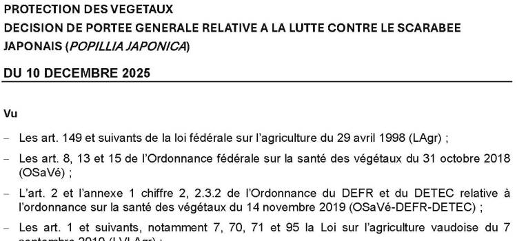 • Règlement d’application de la loi sur l’agriculture vaudoise (RLVLAgr) du 15 décembre 2010, art. 37.