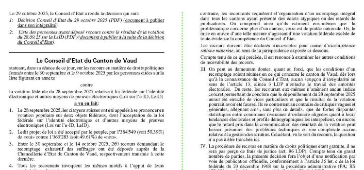 Le Conseil d’Etat a rendu une décision le 12 novembre 2025 dont le dispositif est le suivant:Le Conseil d'Etat