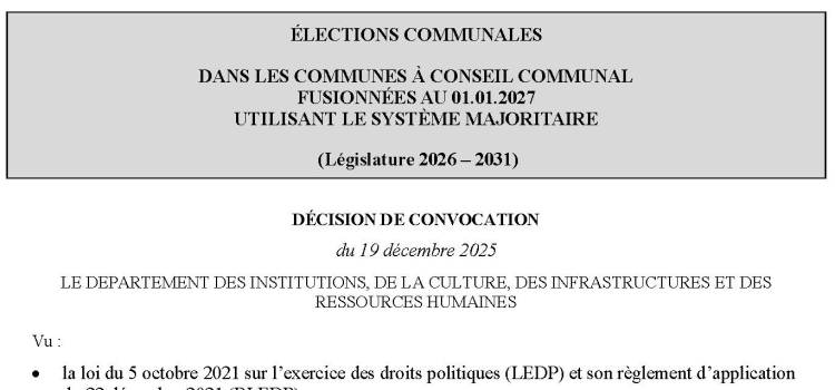 En date du 20 novembre 2025, le Département des institutions, de la culture, des infrastructures et des ressources humaines (DICIRH) a approuvé l'enquête suivante: