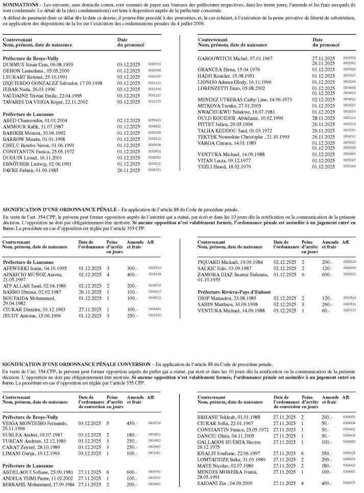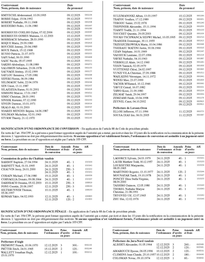 du lundi 18 août au mardi 16 septembre 2025 inclusivement , conformément aux avis publiés dans la FAO et le quotidien 24 heures du vendredi 15 août 2025.