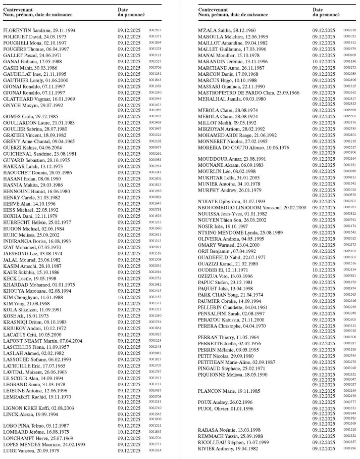a rendu à l'encontre des personnes sans domicile connu citées ci-dessous une décision touchant leur droit de conduire les véhicules automobiles.