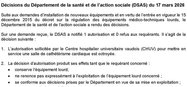 Décisions du département de la santé et de l’action sociale (DSAS) du 28 mars 2025