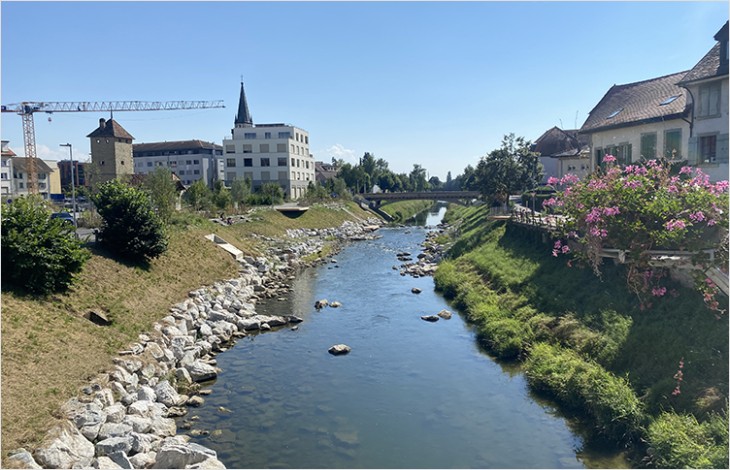 La première revitalisation en milieu urbain en Suisse romande a été inaugurée le 12 septembre 2024 à Payerne en présence des autorités cantonales et communales. Ce projet, qui a débuté en 2019 en collaboration avec le Canton de Vaud, avait plusieurs objectifs. Le principal était de renaturer et revitaliser la rivière de la Broye. Il s’agissait également d’aménager des zones accessibles au public pour améliorer la qualité de vie des habitantes et habitants et les reconnecter avec leur rivière. Désormais, ce nouvel emplacement offre des espaces de détente et de loisir au contact de la rivière et un nouveau parc public sur le thème de la Broye. Enfin, les travaux devaient assurer une meilleure protection contre les crues.