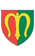 Parti de gueules et de sinoples, à la lettre M majuscule gothique d’or brochante.