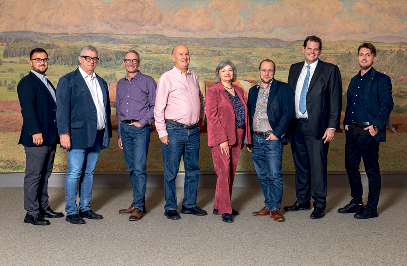 De gauche à droite: Armend Imeri, secrétaire municipal; Raphaël Tatone, vice-syndic; Felix Stürner, municipal; Roger Muller, municipal; Carole Pico, syndique; Jean-Philippe Steck, municipal; Serge Demierre, municipal et Gzim Rama, municipal.
