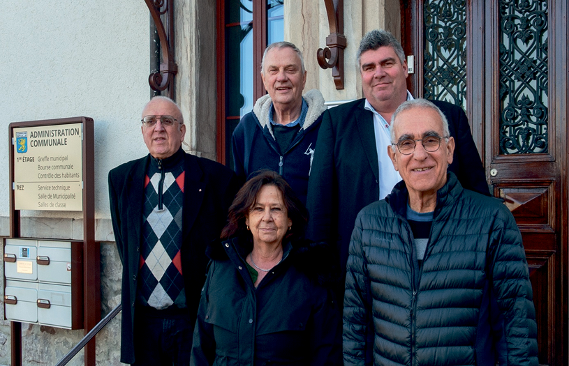 Devant: Pierre-Alain Karlen, Syndic / Corinne Ballif Grognuz, Municipale / Roland Mooser, Municipal.