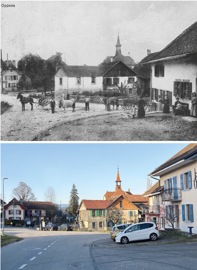Le centre du village (1910-2026) © F. Burkhard