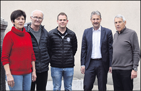 Municipalité de gauche à droite : Cosandey Anne-Catherine, Ferletti Jean-Paul, Apotheloz Boris, Portner Alain (syndic), Julia François.