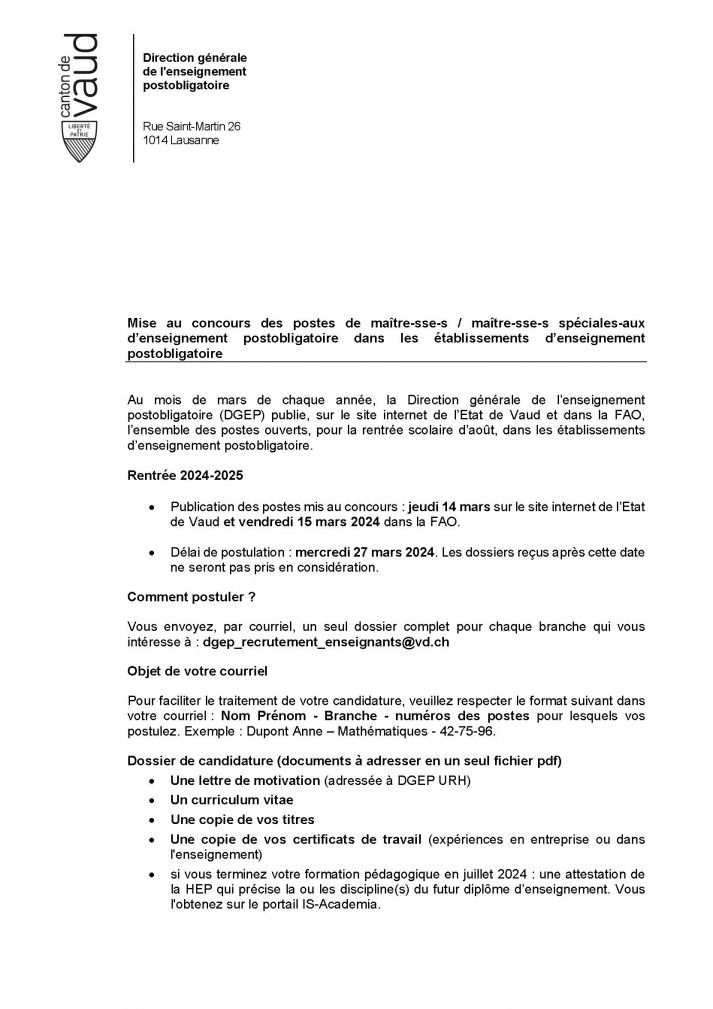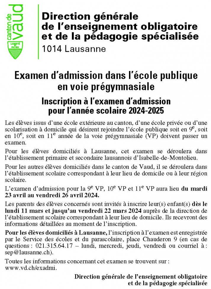 Le Chef du Département de l’enseignement et de la formation professionnelle a approuvé le 16 avril 2024, conformément à l'art. 94 de la loi sur les communes, le règlement sur les transports scolaires de l’Association intercommunale scolaire de Moudon-Lucens et Environs - AISMLE, adopté par le comité de direction le 26 février 2024 et adopté par le Conseil intercommunal, le 21 mars 2024.