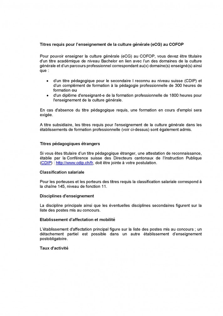 du Département de l’enseignement et de la formation professionnelle (DEF)