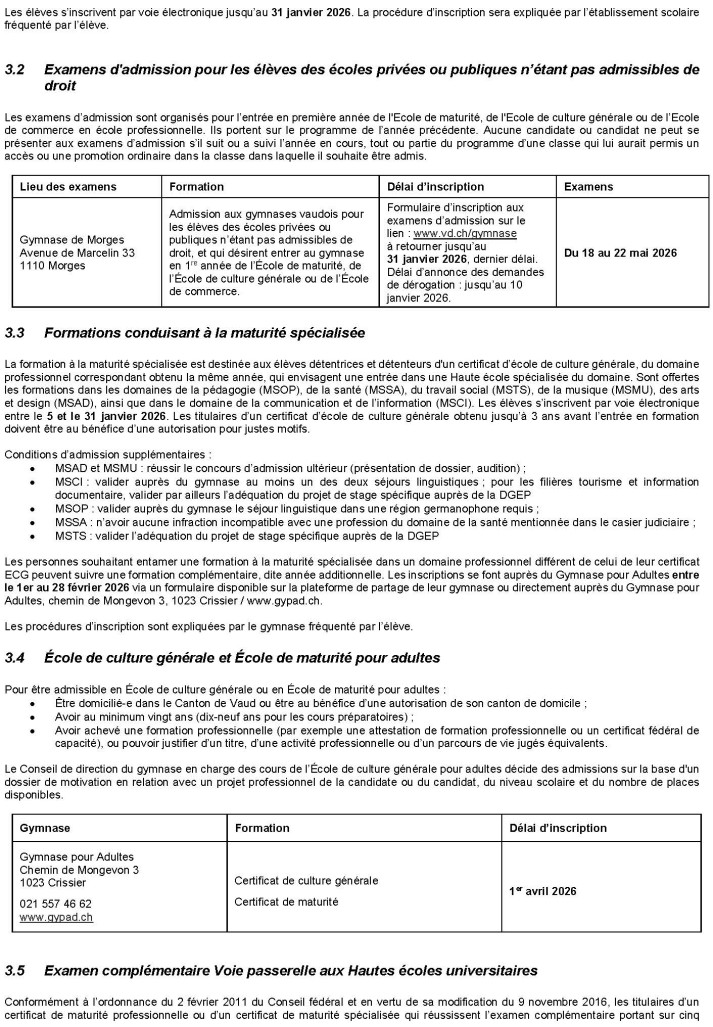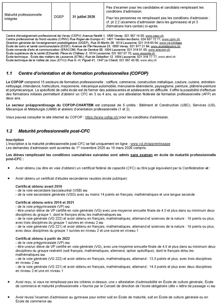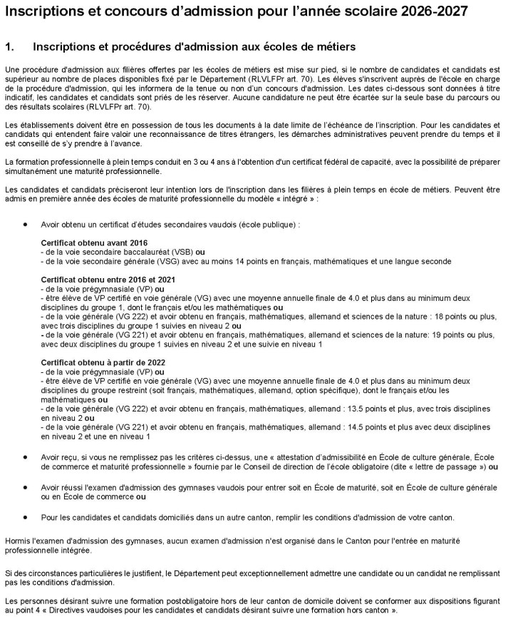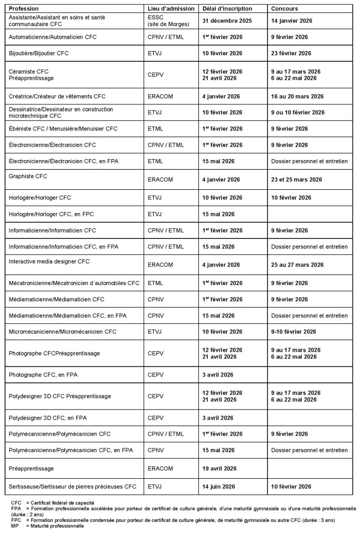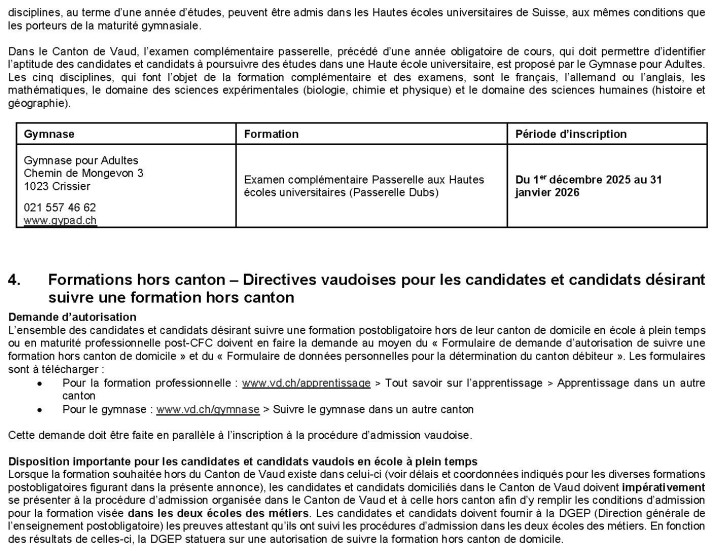Le Chef du département de l’enseignement et de la formation professionnelle a approuvé, en date du 8 décembre 2025 :