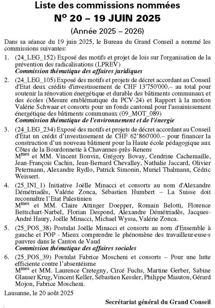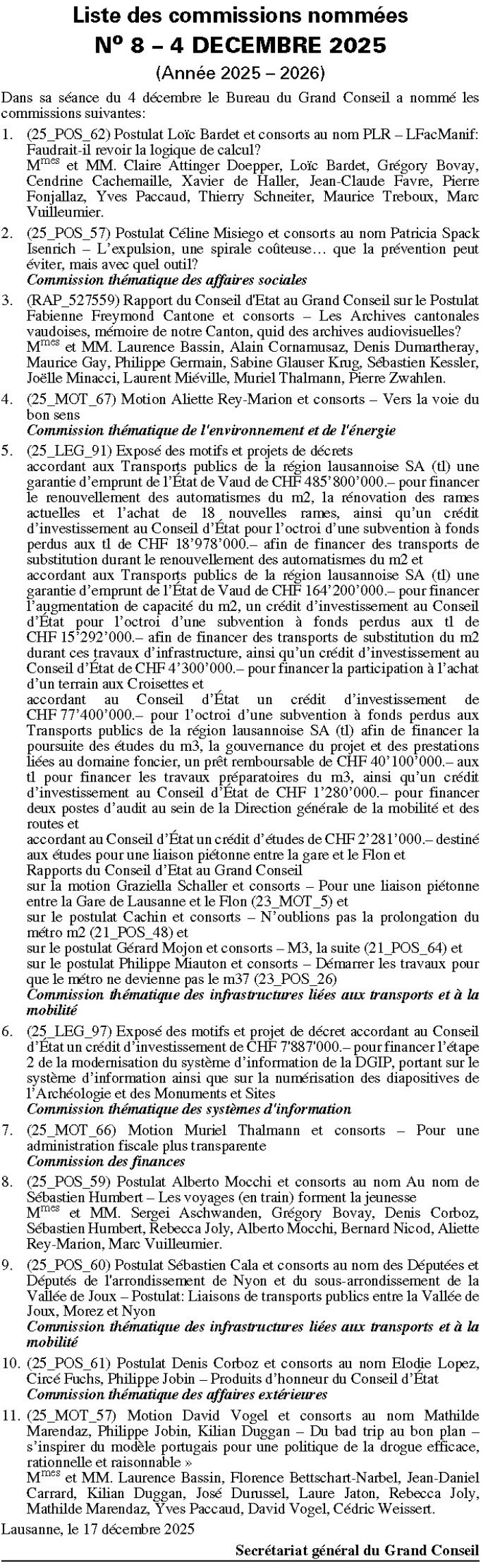 Au mois de juin 2025, le Grand Conseil vaudois procédera à l’élection de 2 membres à la Cour des comptes du Canton de Vaud, à temps plein, pour une période de 6 ans, renouvelable une fois, à compter du 1er janvier 2026, conformément à l’article 6 de la loi sur la Cour des comptes du 12 mars 2013 (LCComptes) et à l’article 157 de la loi sur le Grand Conseil du 8 mai 2007 (LGC). Les conditions d’éligibilités pour être membre de la Cour des comptes (article 8 de la LCComptes) sont les suivantes: