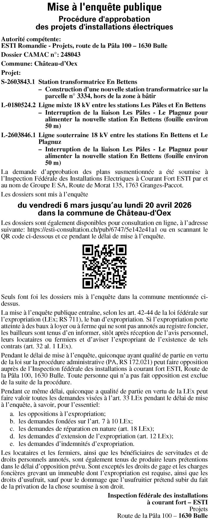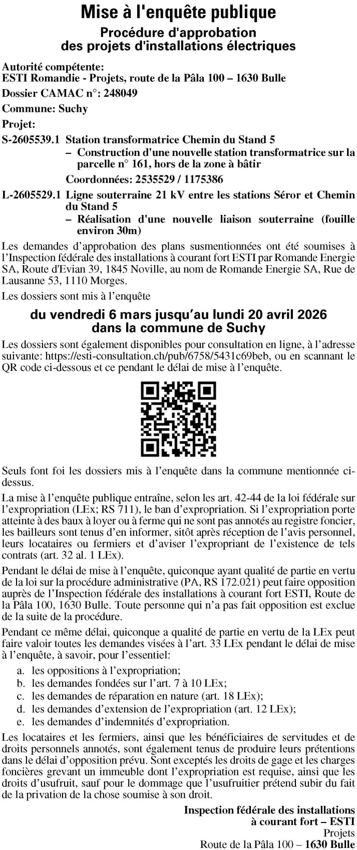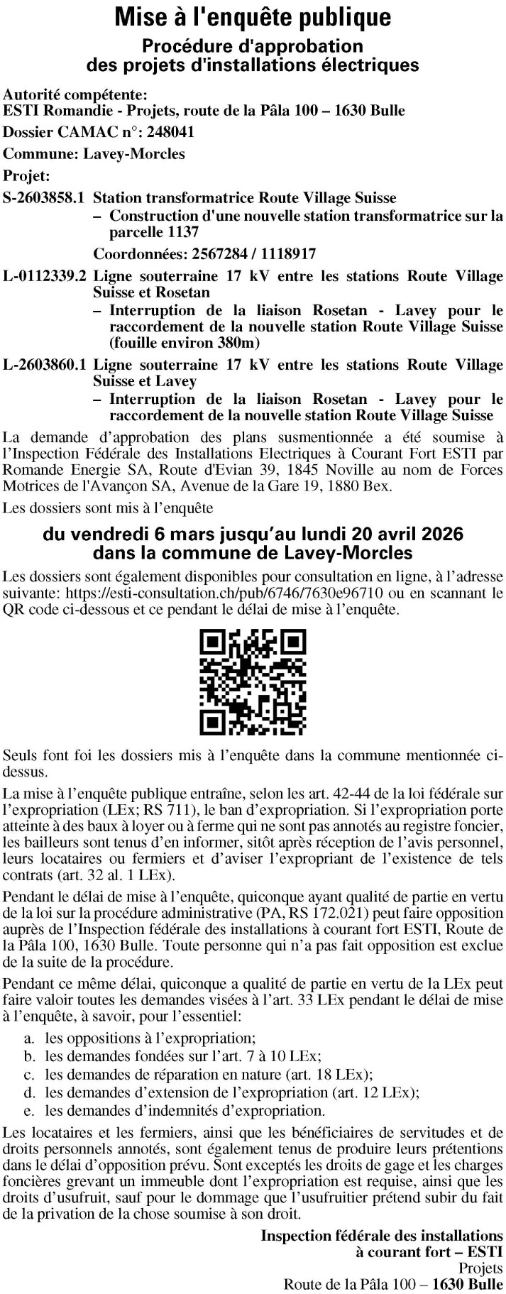 Les pièces relatives à cette demande seront déposées du 7 mars au 7 avril 2026 inclusivement, au greffe municipal de la Commune de Chevroux, où les intéressés peuvent en prendre connaissance.