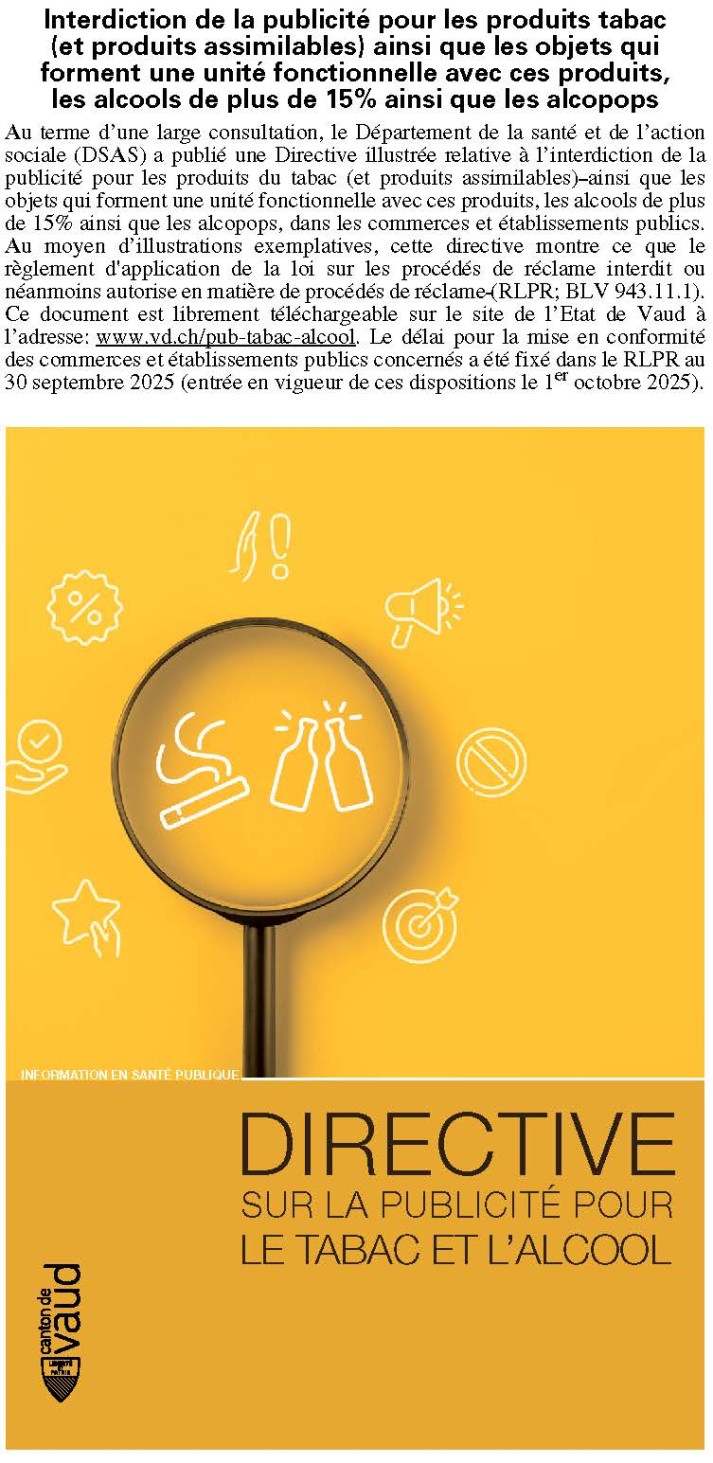 Le texte peut être consulté sur le site de la Direction générale de la santé: www.vd.ch/investpro-aides