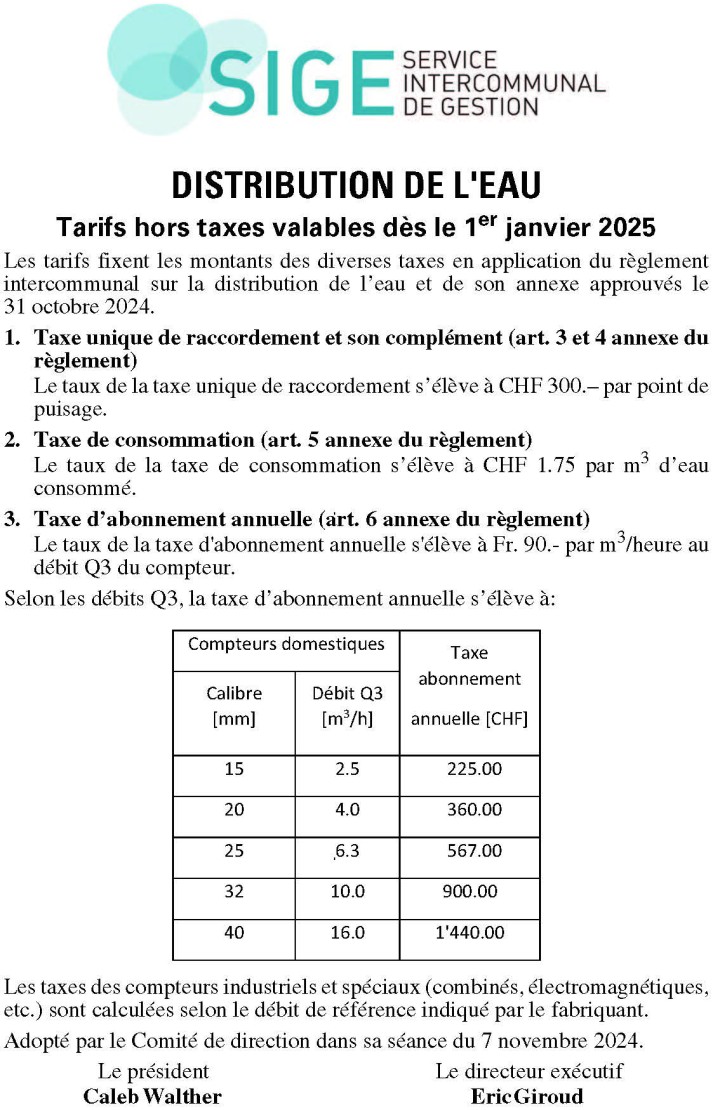 Dans sa séance du 30 octobre 2025, le Conseil intercommunal du SIGE a